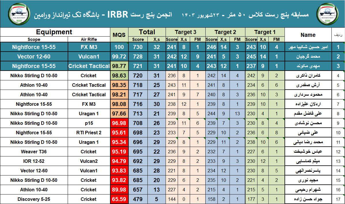 نفرات برتر مسابقه بنچ رست ۵۰ متر انجمن IRBR